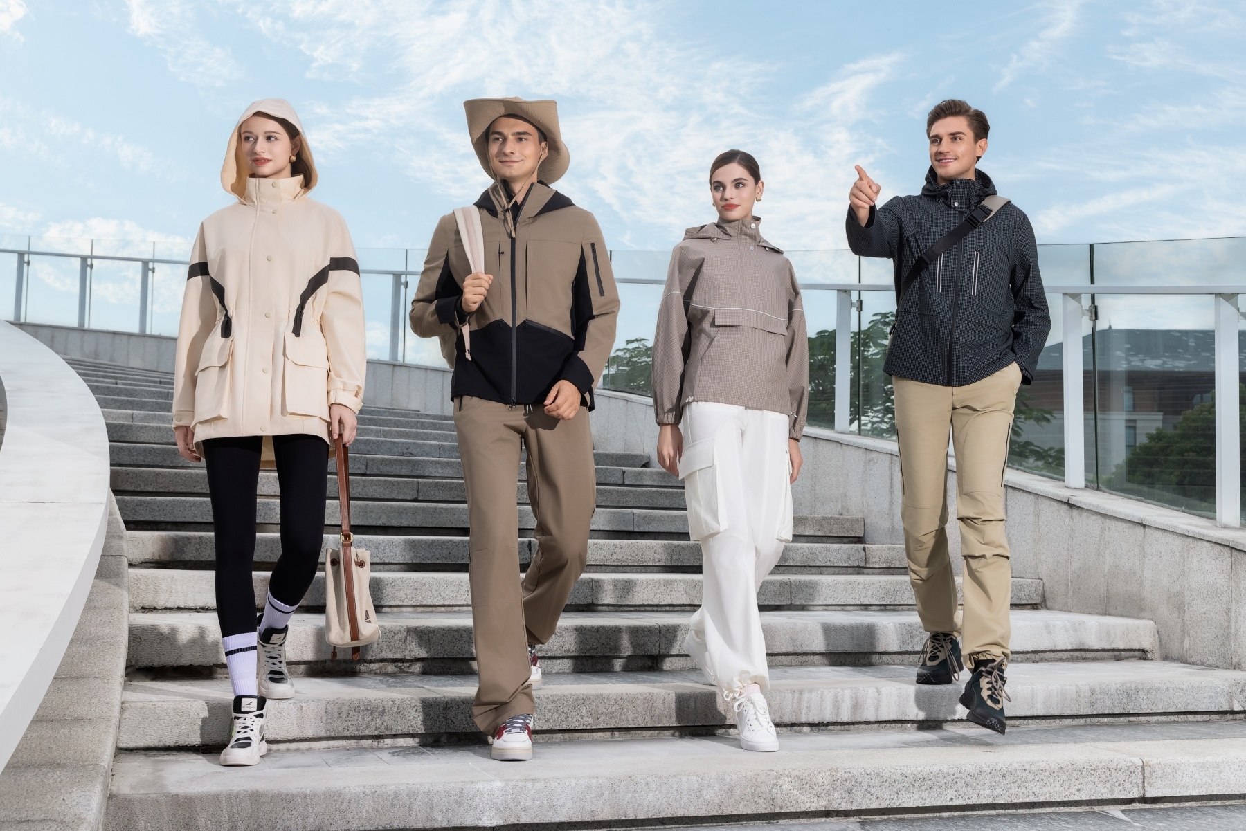 休閑運動(dòng)服飾打造(zao)360°無束縛體(ti)驗(yàn),融入極簡剪裁,滿足運動(dòng)休閑與日(ri)常通(tong)勤雙重(zhong)需求。夾克服、沖鋒衣及(ji)羽絨服等(deng)産(chan)品(pin)秉承(cheng)“功能(néng)即美學(xué)”理(li)念,覆蓋(gai)男女同款設(shè)計(ji),實現(xian)戶(hu)外性能(néng)與都市(shi)潮(chao)流的(de)跨界突破。